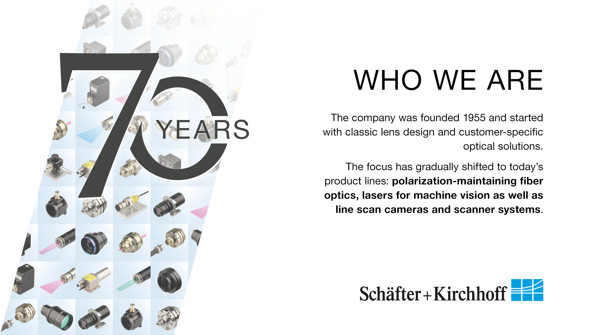 The company was founded 1955 and started with classic lens design and customer-specific optical solutions. The focus has gradually shifted to today’s product lines: polarization-maintaining fiber optics, lasers for machine vision as well as line scan cameras and scanner systems.