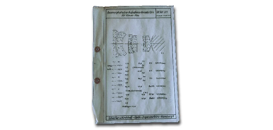 Anamorphic cinema optics calculated in 1956 on pergament paper.