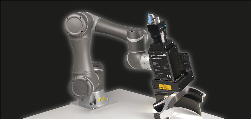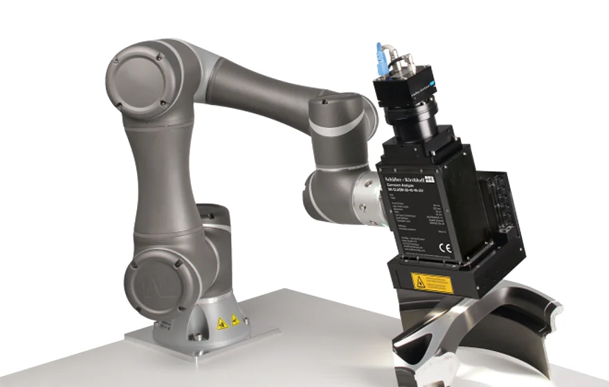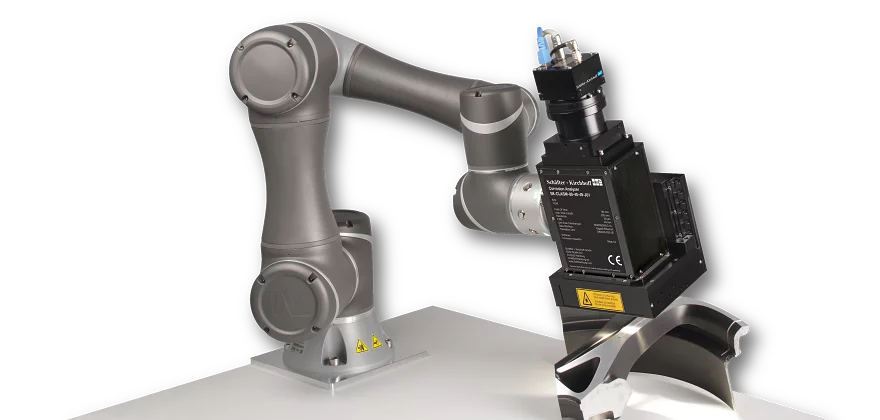 Thanks to a 6-axis robot arm, there are almost no limits to the scanning of surfaces. Whether strongly curved, slightly twisted or a flat surface - all this is no handicap for the robot arm. This great freedom is supported by intuitive operation for creating the path for the scanning process. Waypoints can be set either by hand or in an easy-to-use software interface. When using the software interface, the robot arm can be controlled with high precision in both the position and angle of the sensor head.