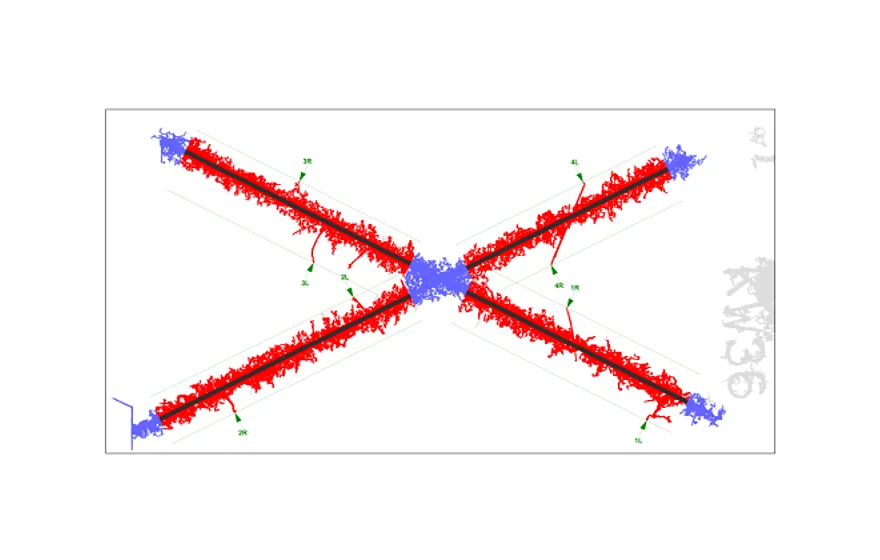 Automated evalution of various corrosion parameters of different scribe pattern. Among other things, the infiltration area, the average infiltration width, length and number of threads are evaluated.