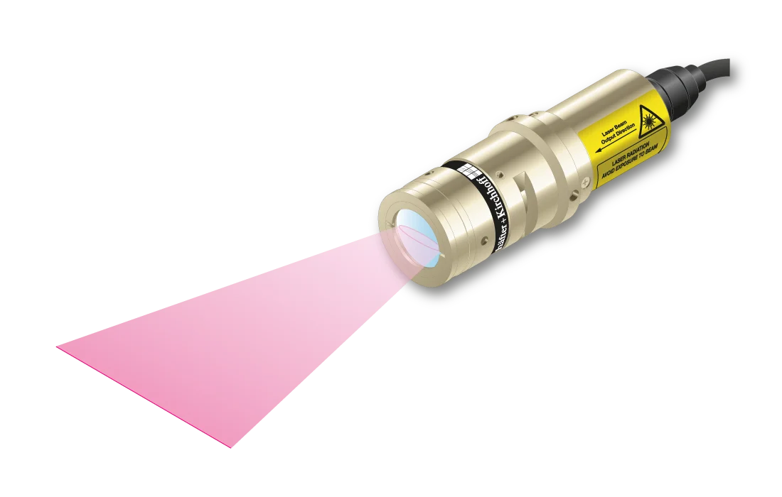 Laser line with a fan angle and approx. uniform intensity distribution.- Line length: 90 mm