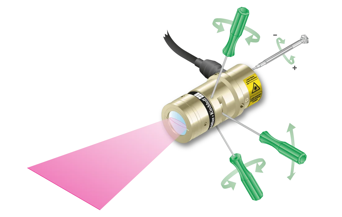 The working distance can be adjusted by adjusting the focus setting. Please note that beam parameters like line length and line width increase proportionally to the working distance.