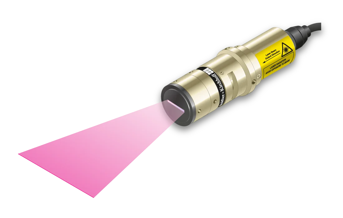 Laser line with a fan angle, approx. uniform intensity distributionand extended depth of focus.- Line length: 26 mm