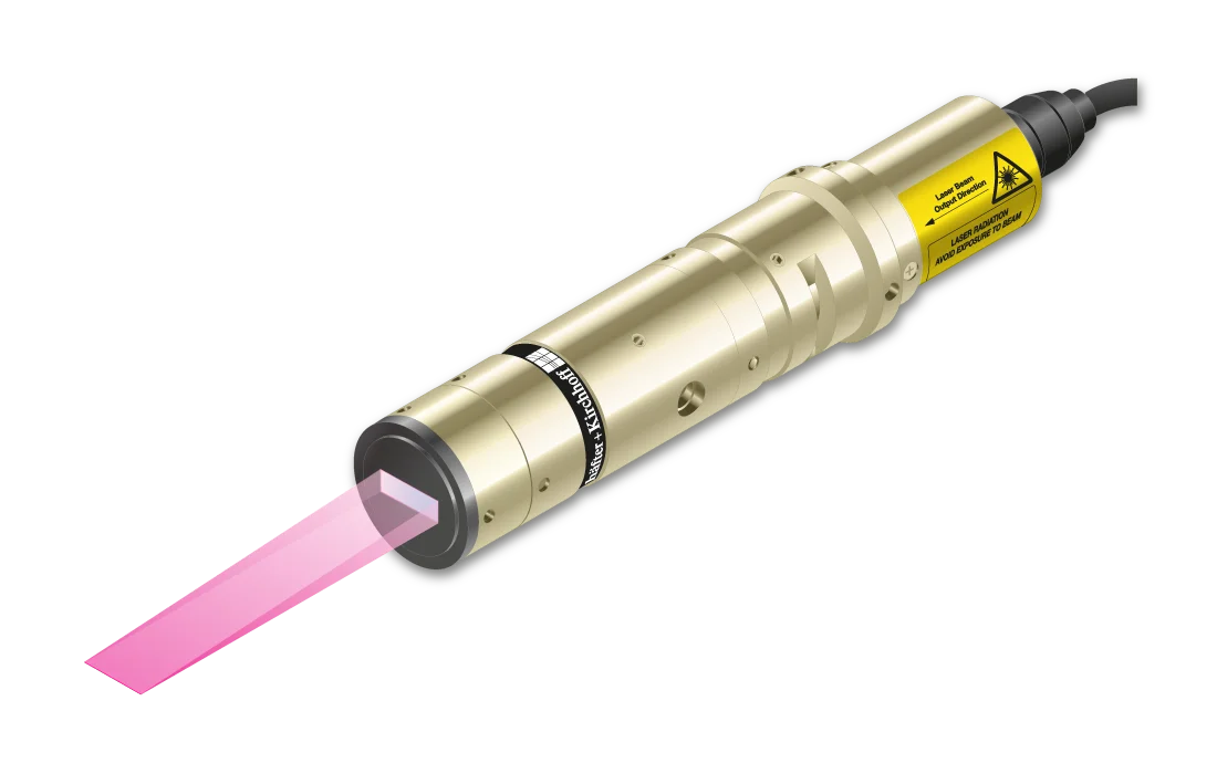 Semi-telecentric laser line with constant line length 15mm, approx. uniform intensity distribution and extended depth of focus.- Line length: 15 mm