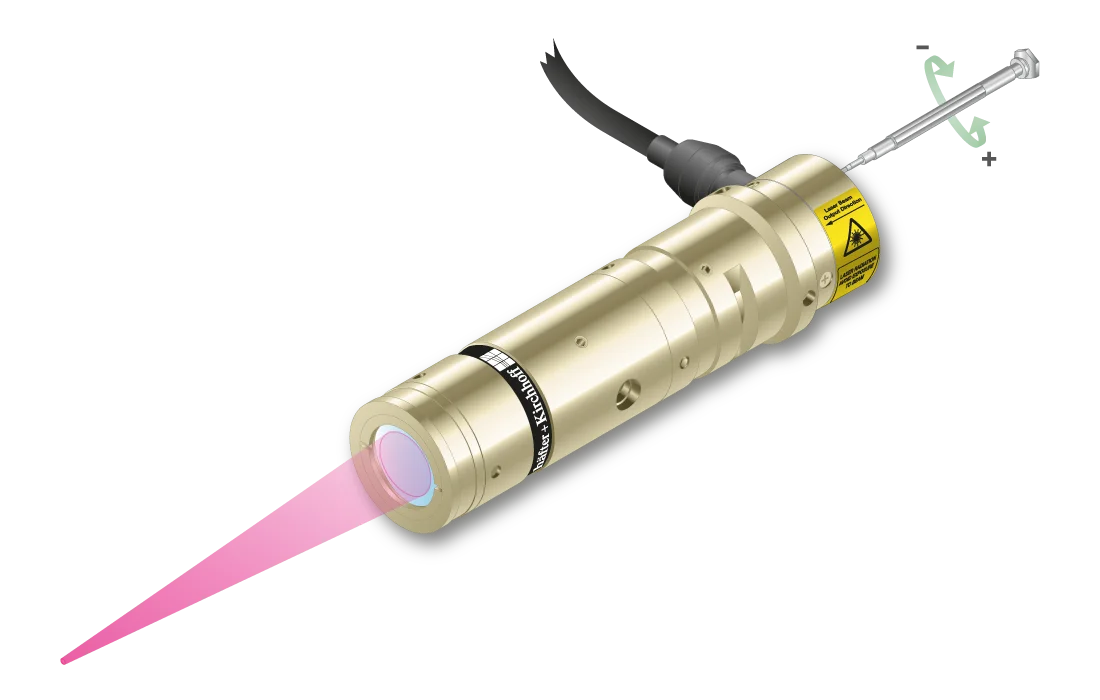 The laser has integrated electronics type C for control of the laser output power. The output power can be controlled using the modulation input ports (TTL and analog) or manually using the potentiometer.