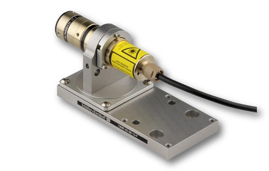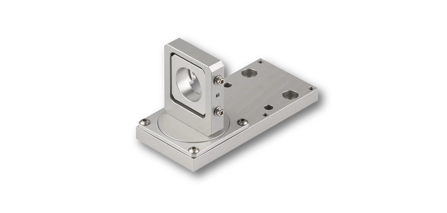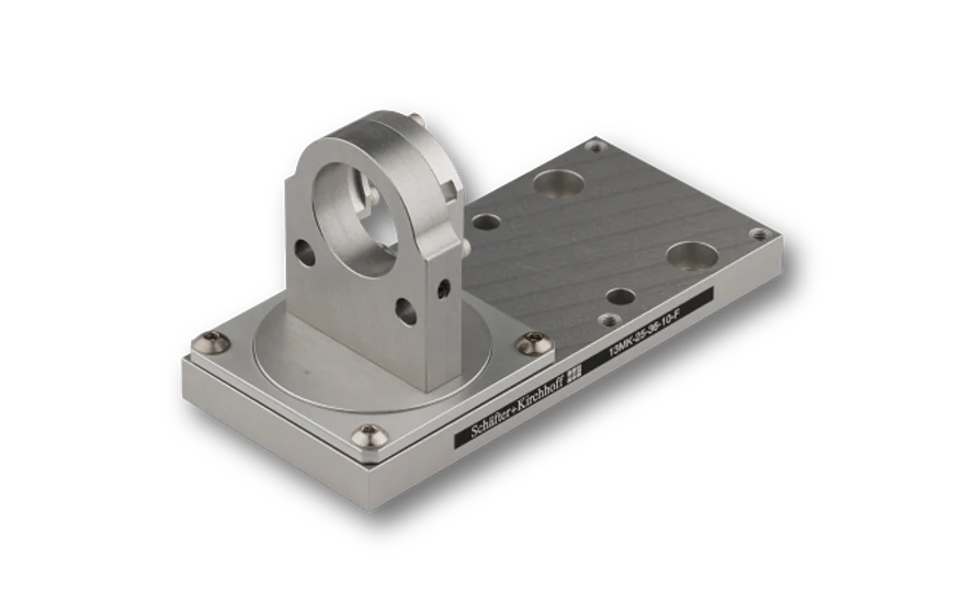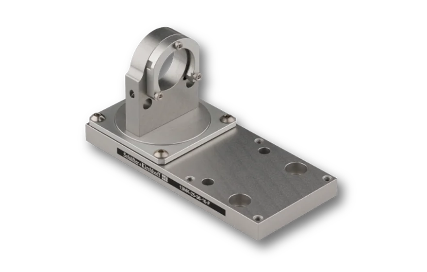 The Mounting Console of type 13MK-25-36-10-F with flat base plate allows a precise and mechanically rugged alignment of Laser Modules with Ø 25/28 mm. The lasers are held by means of a clamp collar in such a way that the focussing and focus locking mechanism remain accessible.