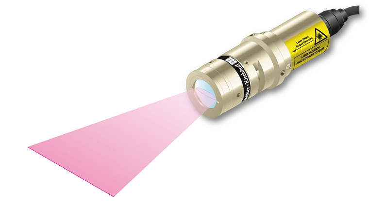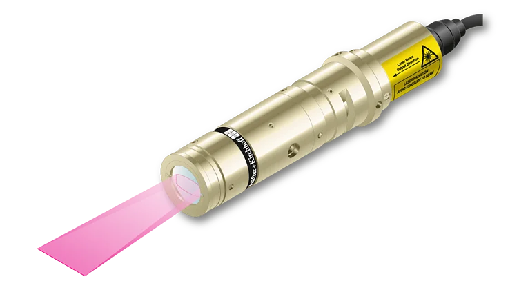Laser line with a large fan angle and Gaussian intensity distribution.- Line length: 140 mm