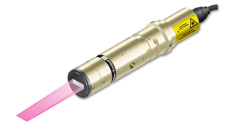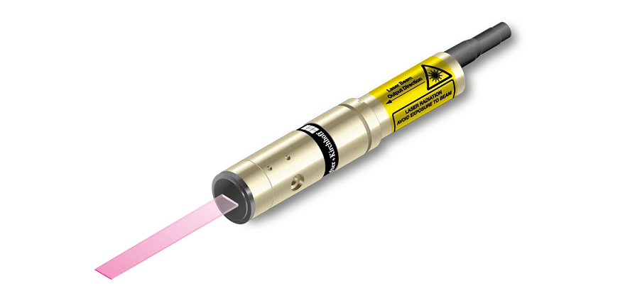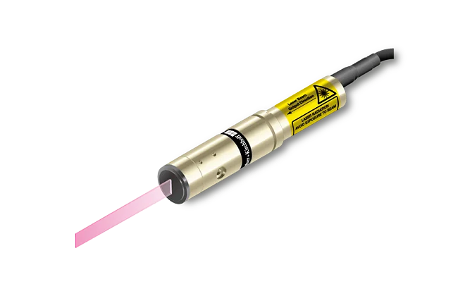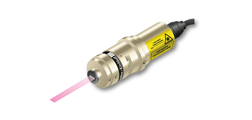 Semi-telecentric laser line with constant line length of 2.4 mm and extended depth of focus.- Line length: 2.4 mm
