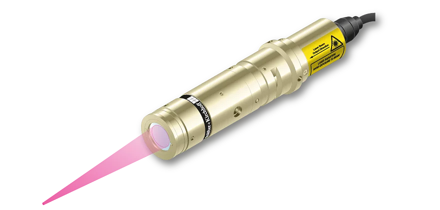 Compact Laser spot with elliptical Gaussian beam profile.- Spot diameter: 0.001 x 0.002 mm