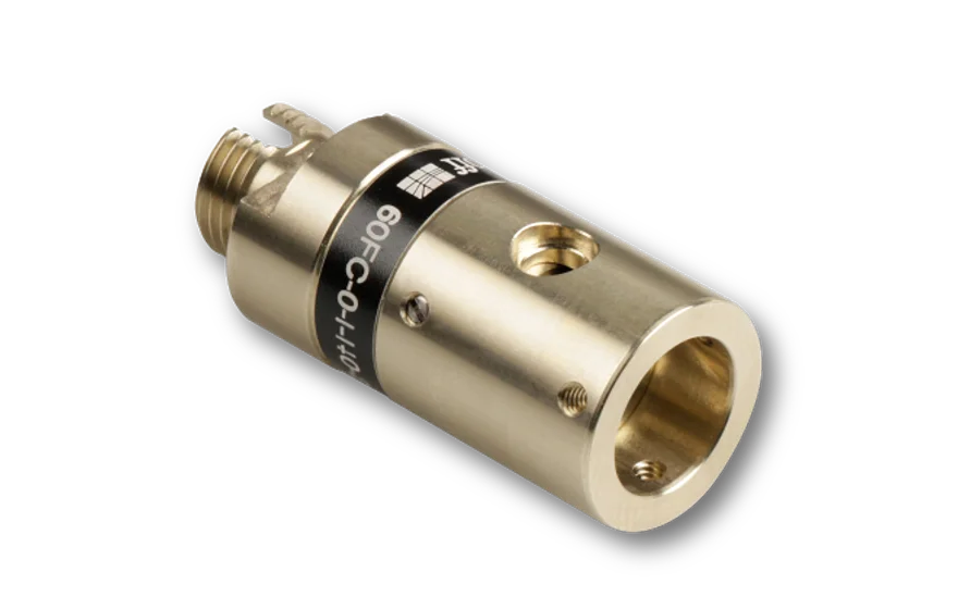 The distance between fiber end-face and collimating optics is adjusted by means of an eccentric key. The lens does not rotate when adjusting the focus. The final focus setting is locked by means of two radially arranged clamping screws. Additionally attachment optics of series 60FC can be mounted to the front of the collimator.