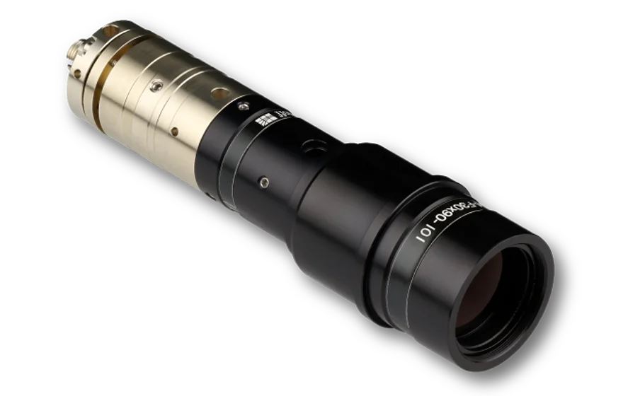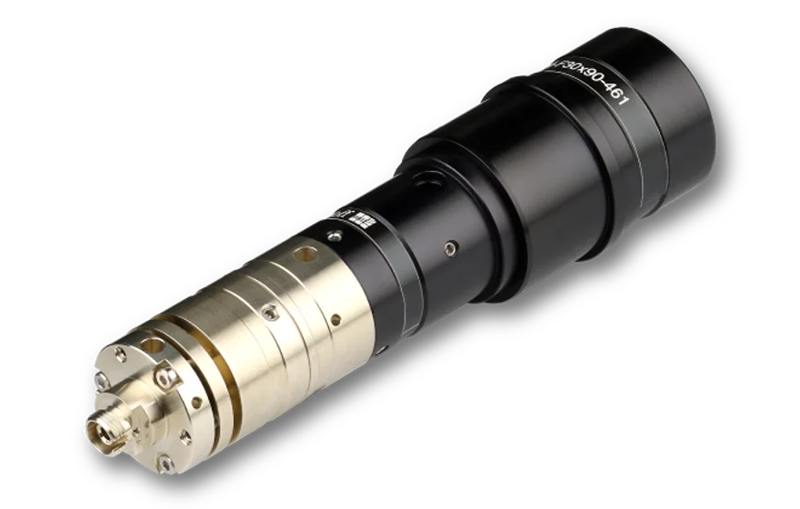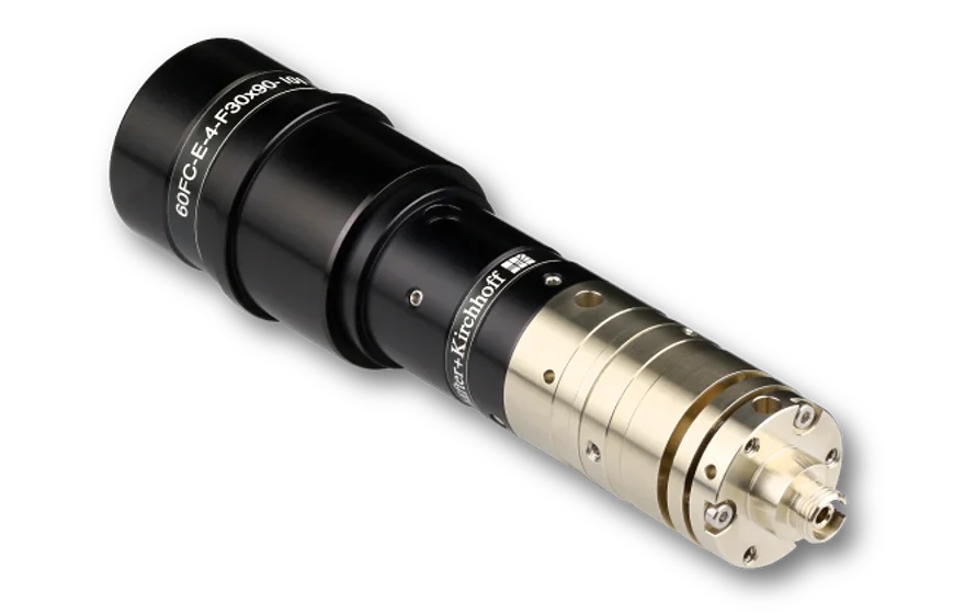 The fiber collimator generates a collimated beam with an elliptical cross section. It is suitable for single-mode and polarization-maintaining fiber cables and leads to a collimated beam with a Gaussian intensity profile and an elliptical beam cross section with an axis ratio of 1:3.