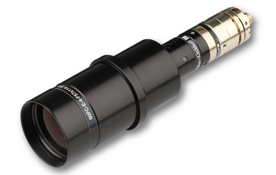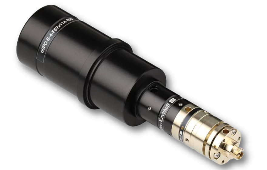 The fiber collimator generates a collimated beam with an elliptical cross section. It is suitable for single-mode and polarization-maintaining fiber cables and leads to a collimated beam with a Gaussian intensity profile and an elliptical beam cross section with an axis ratio of 1:2.