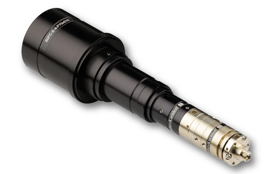 The fiber collimator generates a collimated beam with an elliptical cross section. It is suitable for single-mode and polarization-maintaining fiber cables and leads to a collimated beam with a Gaussian intensity profile and an elliptical beam cross section with an axis ratio of 1:3.