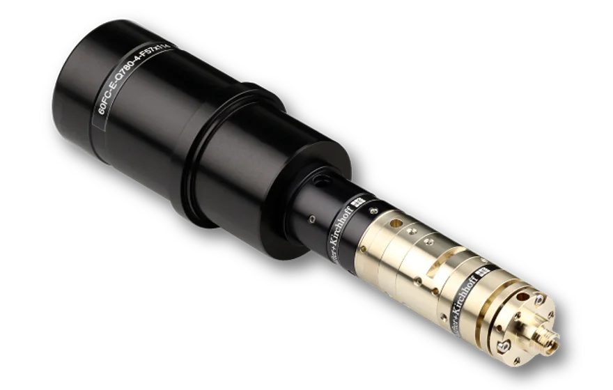 All fiber collimators of seris 60FC-E are aligned for the specified wavelength.In case of need you can change the distance between fiber end-face and the first collimating optics by means of an eccentric key. The lens does not rotate when adjusting the focus in both cases. The final focus setting is locked by means of two radially arranged clamping screws. Additionally attachment optics can be mounted to the front of the collimator.