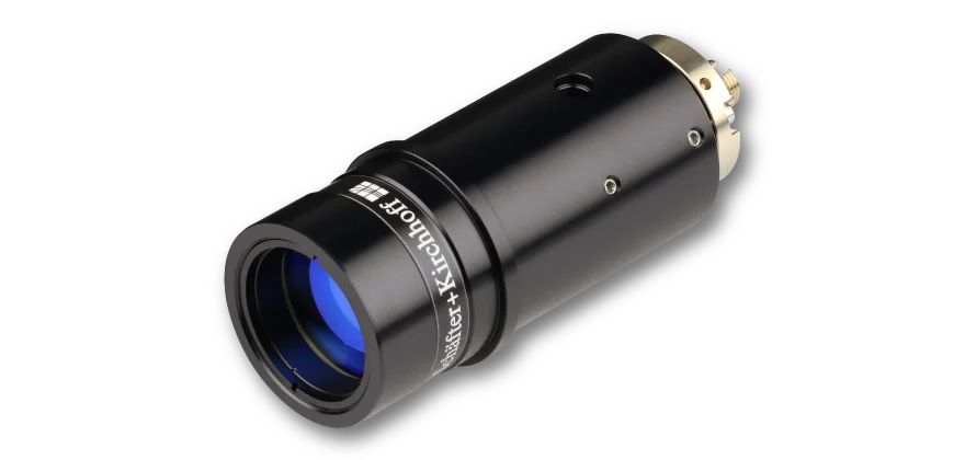 The collimator possesses a flange for low-strain mounting e.g. using the clamp collars series CC.