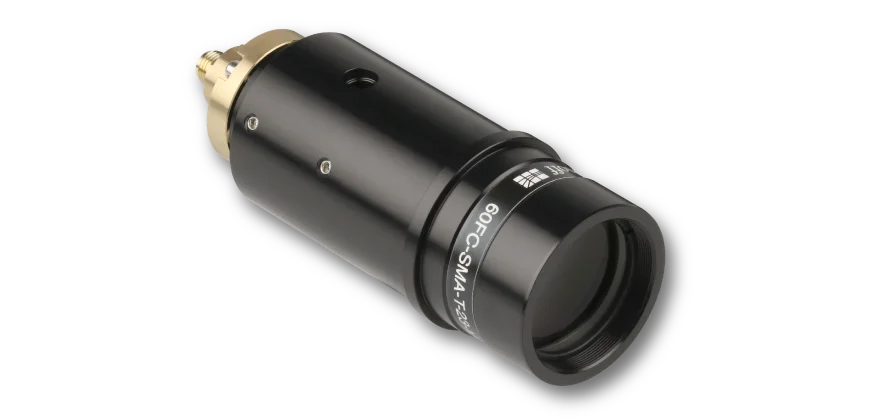 attachment optics of series 60FC-SMA can be mounted to the front of the collimator.
