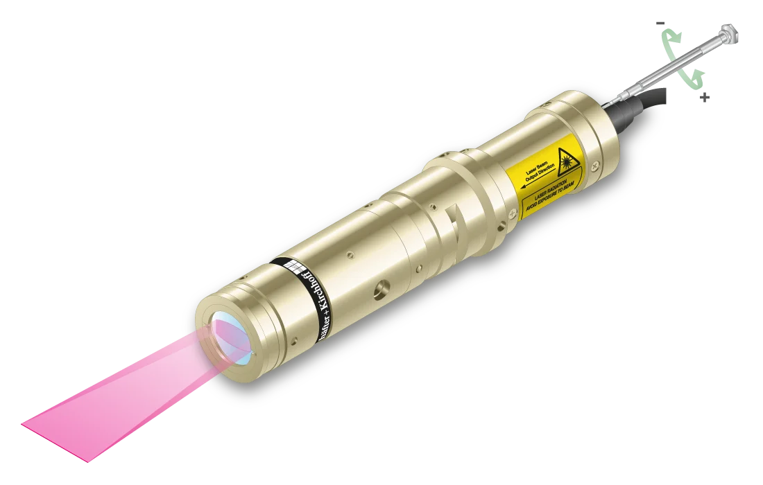 Laser line with a fan angle, approx. uniform intensity distribution and very thin lines.- Line length: 56 mm