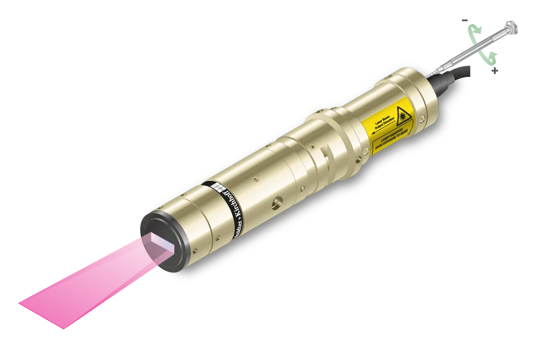 Laser line with a fan angle, approx. uniform intensity distribution and extended depth of focus.- Line length: 150 mm