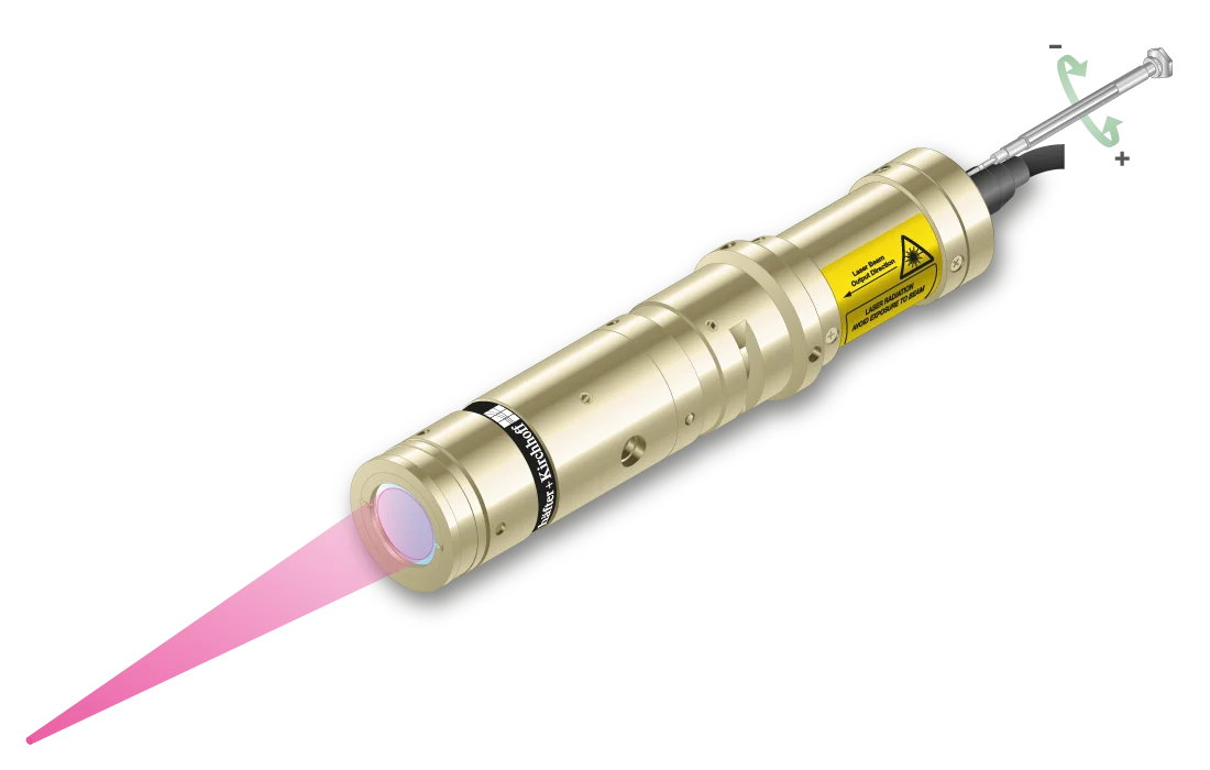 The working distance can be adjusted by adjusting the focus setting. Please note that the spot diameter increases proportionally to the working distance. A fine-adjustment of the distance between laser and target is recommended for fine-focusing.