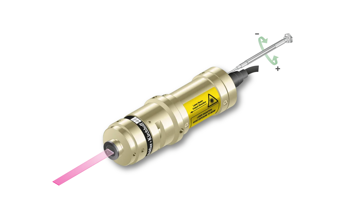 Semi-telecentric laser line with constant line length of 2.4 mm and extended depth of focus.- Line length: 2.4 mm