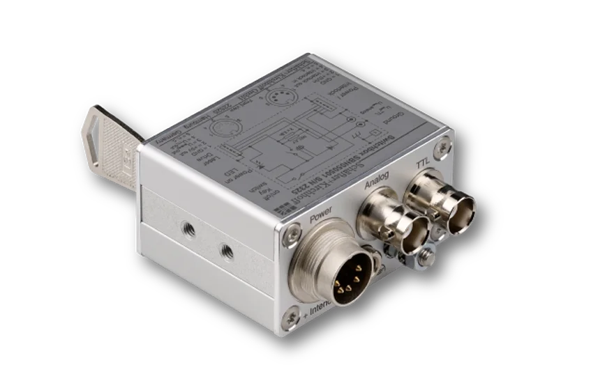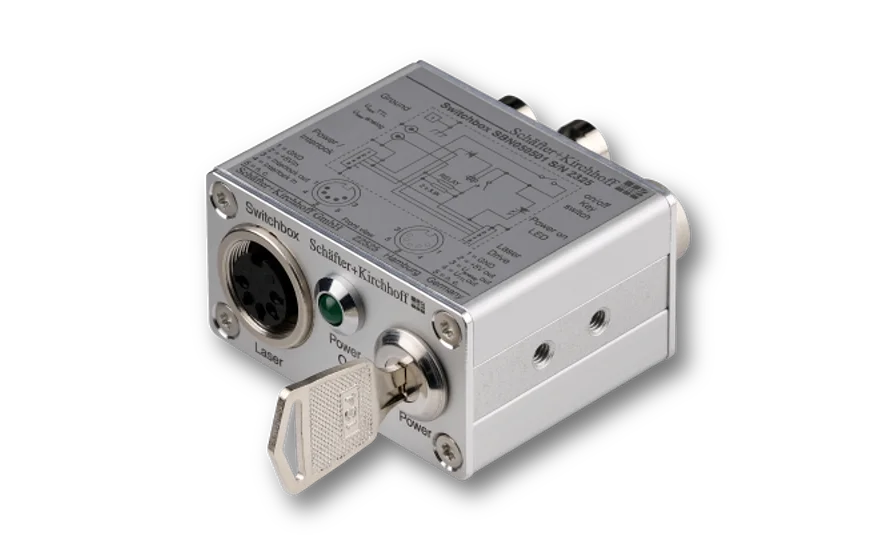 The Switchbox SBN050501 has two separate modulation inputs for laser diode beam sources of electronics type S/C/P/H and 5 V power supply.Recommended power supply module PS051003E.