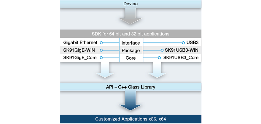 Schäfter+Kirchhoff offers an SDK with API DLLs and C++ class libraries for their line scan cameras for the development of customized application software.