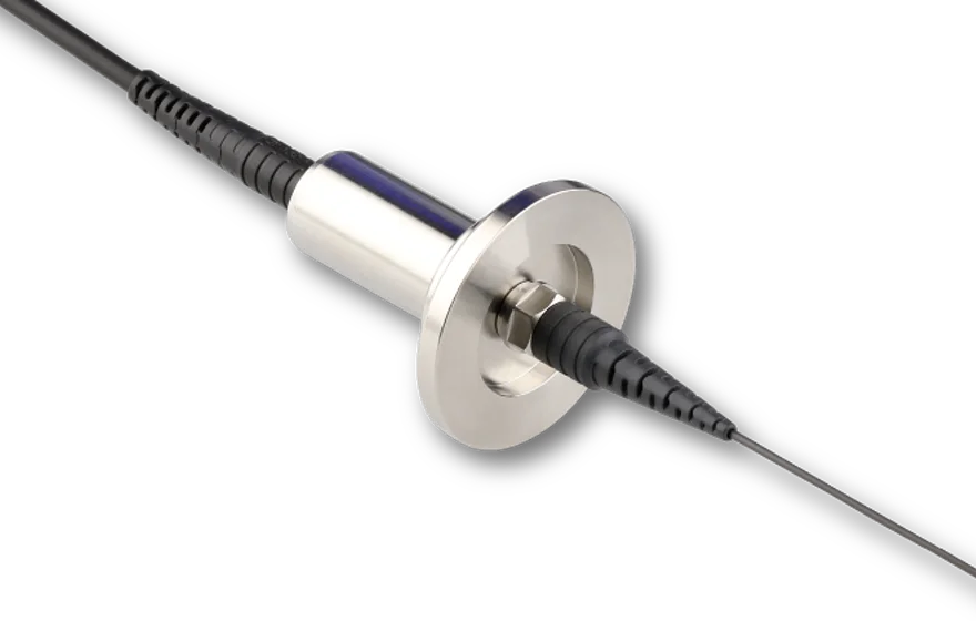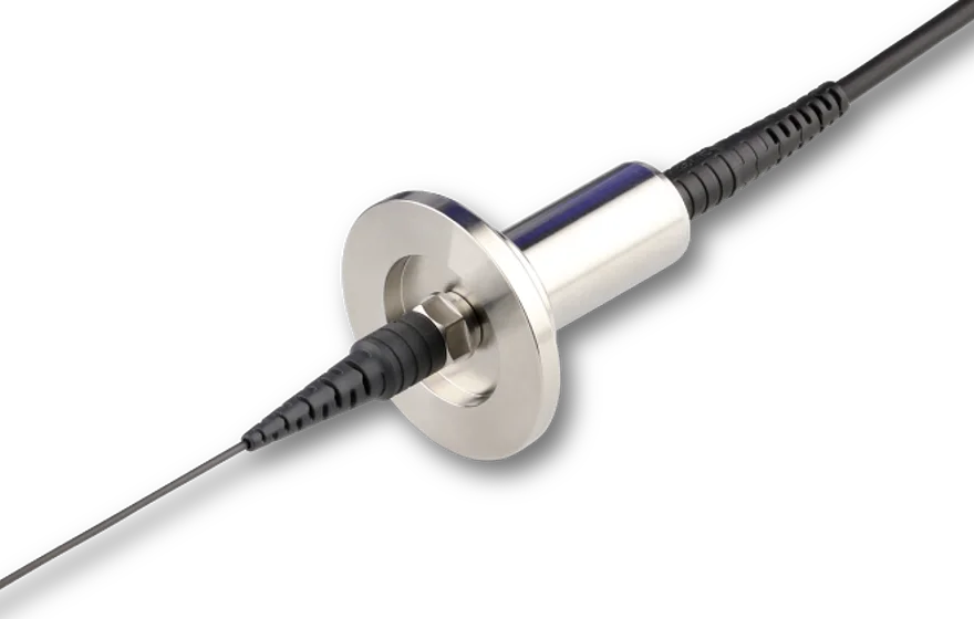 Vacuum flange type KF16 with integrated fiber cable.- Based on small flange KF16 (stainless steel)