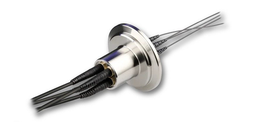 Vacuum feed-throughs with multiple single-mode, polarization-maintaining or multimode fiber cables.