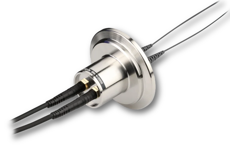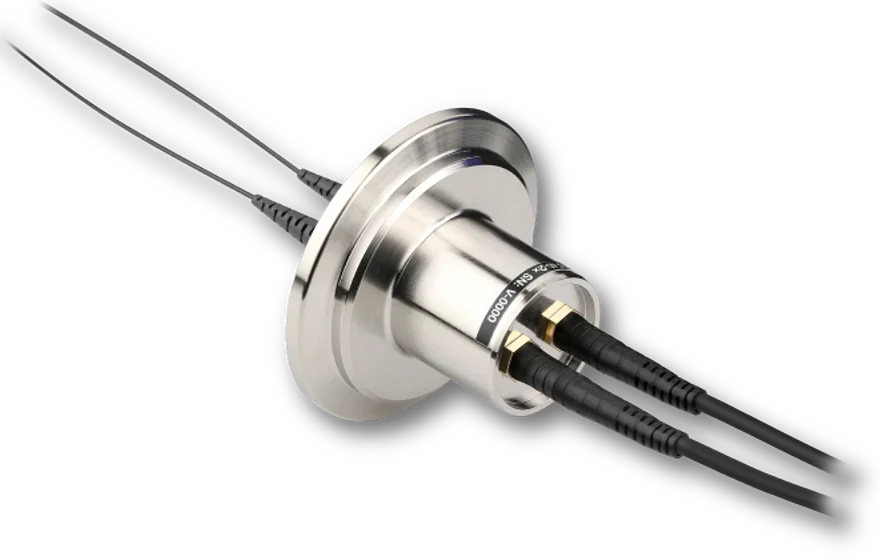 All vacuum feed-throughs are supplied with non-exchangable, continous, end-to-end fiber cables. That means there is no additional fiber connection (mating) at the vacuum flange.