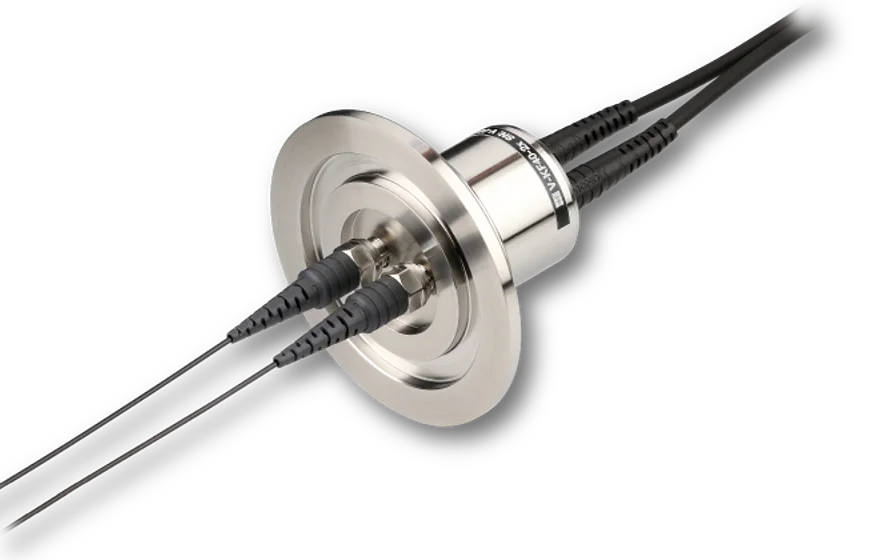 For single-mode fiber cables, the connector away from the vacuum can be core-aligned as an option.