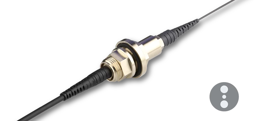 On the vacuum side, the fiber cables are equipped with Ø 900 μm buffer made of Hytrel, Nylon or Tefzel. The parts of the fiber cables outside the vacuum, have a Ø 3 mm cable with Kevlar strain-relief with bend protection both at the fiber connector and the flange.