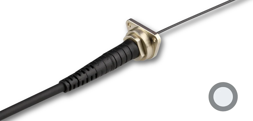 Casing feed-throughs with one single-mode, polarization-maintaining or multi-mode fiber cable.