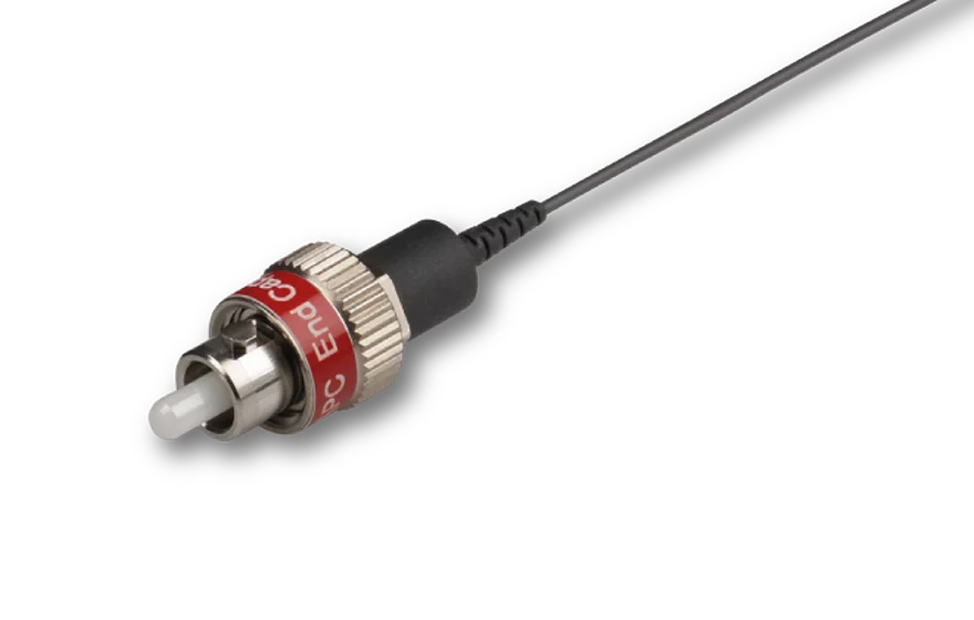 The fiber connectors of all PCF fiber cables are equipped with an end cap. This means that a short piece of coreless fiber (< 300 µm) is spliced onto the polarization-maintaining PCF fiber. The end cap seals the microstructure of the fiber and allows for an easy cleaning of the end-face. Additionally it also reduced the power density at the fiber end-face.