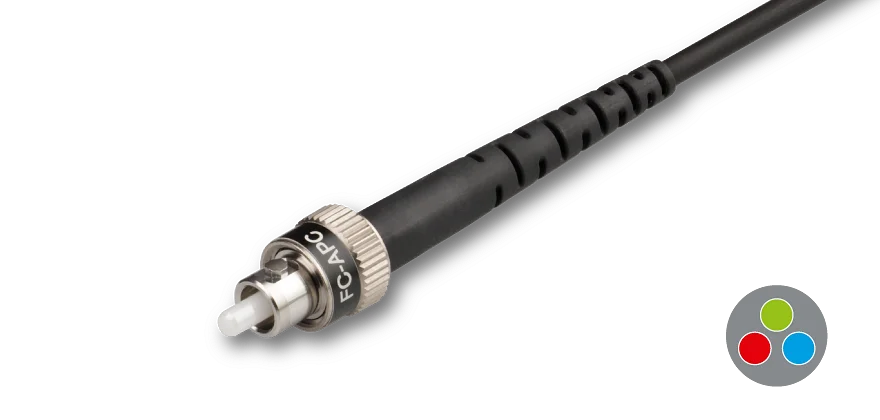 The fiber length can be customer-specified (there is a minimum fiber length). The single-mode PCF fiber cables are offered as Ø 900 µm buffer in black, or a Ø 3 mm cable in black with Kevlar strain-relief.