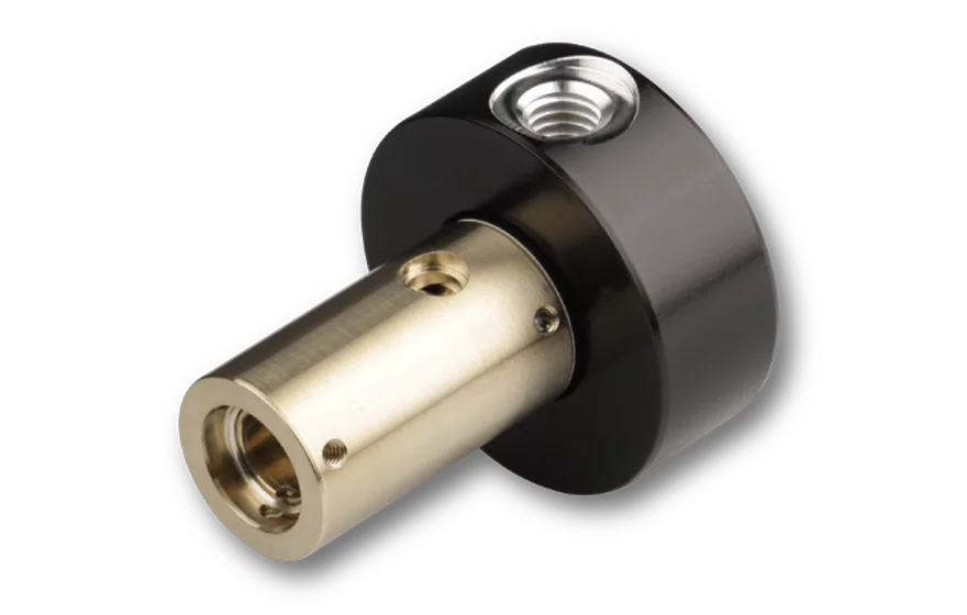 Such as with the standard series 60FC fiber collimators, the distance between fiber end-face and collimating optics is adjusted by means of an eccentric key. The lens does not rotate when adjusting the focus. The final focus setting is locked by means of two radially arranged clamping screws.