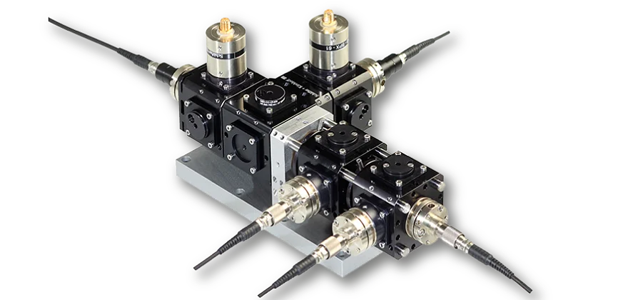 The dichroic retardation plate (also known as waveplates or retarder plates) are λ/2 plates for one wavelength and do not affect the polarization of the other wavelength. The correctly positioned plate rotates two orthogonally polarized input beams of different wave lengths into linear polarization states in parallel. The dichroic retardation plates have a rotary mount and are designed to be integrated into the multicube system e.g. in dichroic Fiber Port Clusters.