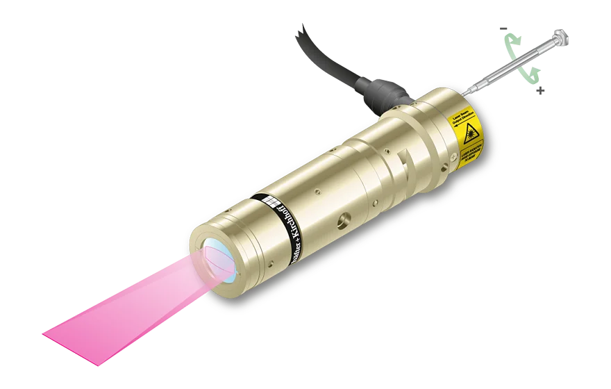 For this laser type the working distance is fixed. A fine-adjustment of the distance between laser and target is recommended for fine-focusing in order to achieve minimal line width.