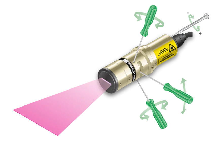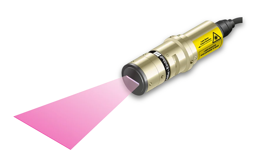 Machine vision laser line with a fan angle, approx. uniform intensity distribution and extended depth of focus.- Depth of focus 4 times larger than for corresponding Micro Laser Line Generator