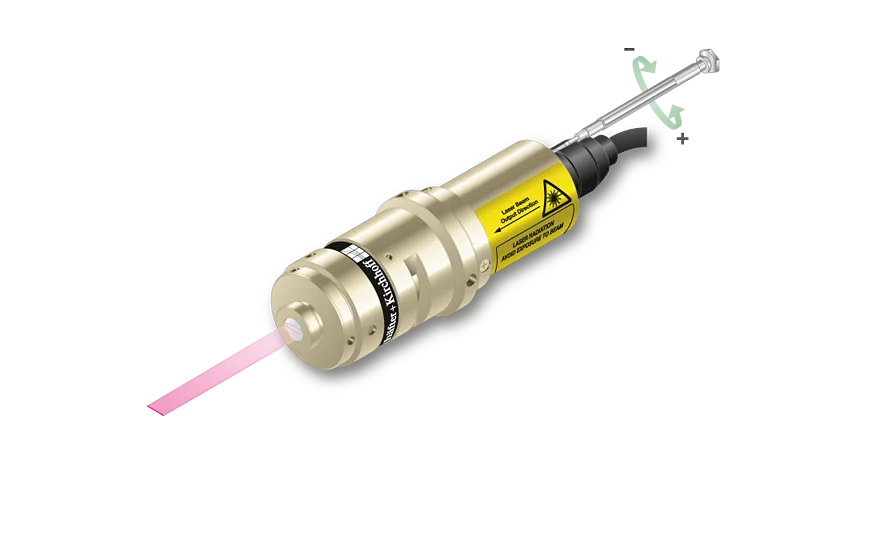 For this laser type the working distance is fixed. A fine-adjustment of the distance between laser and target is recommended for fine-focusing in order to achieve minimal line width.