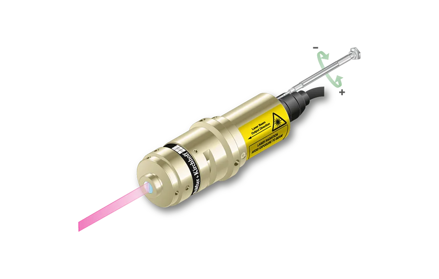For this laser type the working distance is fixed. A fine-adjustment of the distance between laser and target is recommended for fine-focusing in order to achieve minimal line width.