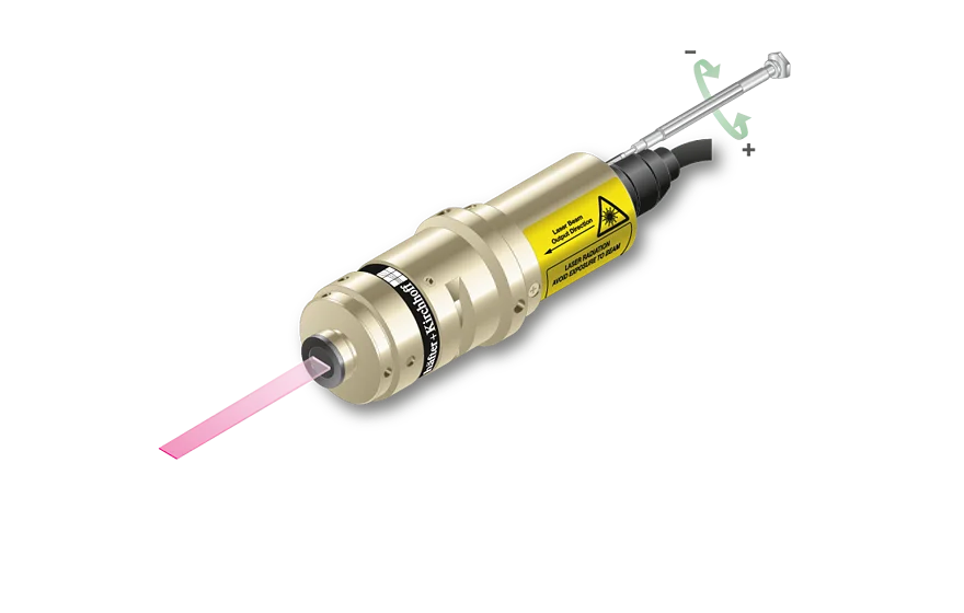 For this laser type the working distance is fixed. A fine-adjustment of the distance between laser and target is recommended for fine-focusing in order to achieve minimal line width.