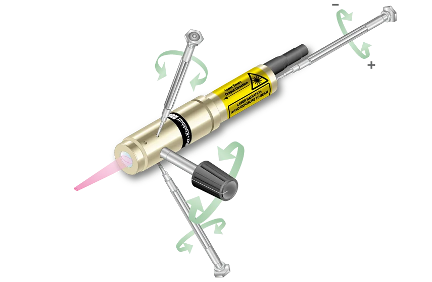 Please note, that reducing the laser power by potentiometer or analog modulation input so that it operates close to the laser threshhold negatively affects laser features like pointing stability, line width/spot size or state of polarization.