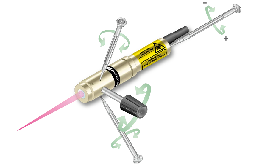 Please note, that reducing the laser power by potentiometer or analog modulation input so that it operates close to the laser threshhold negatively affects laser features like pointing stability, line width/spot size or state of polarization.