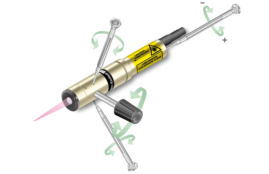 Please note, that reducing the laser power by potentiometer or analog modulation input so that it operates close to the laser threshhold negatively affects laser features like pointing stability, line width/spot size or state of polarization.