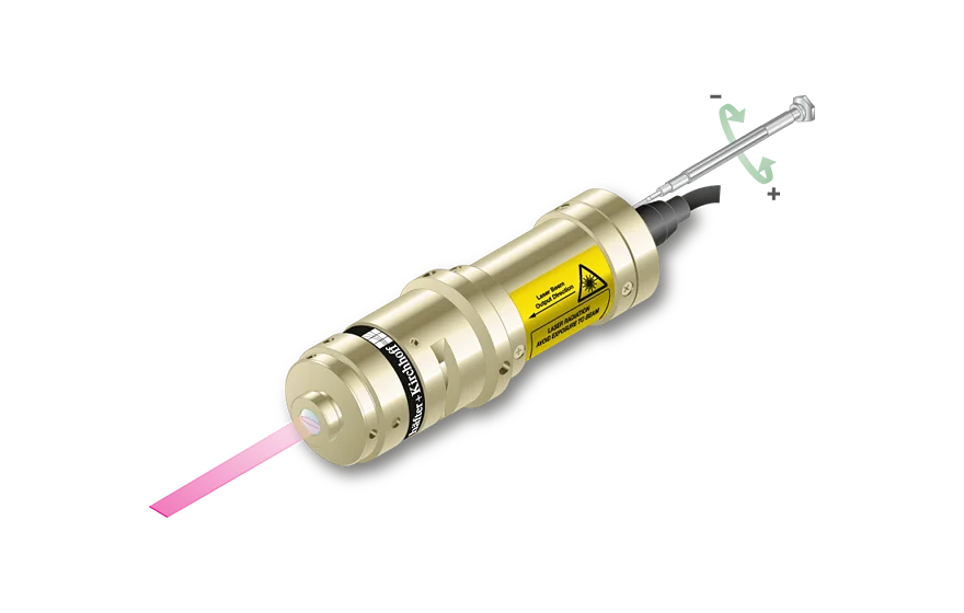 For this laser type the working distance is fixed. A fine-adjustment of the distance between laser and target is recommended for fine-focusing in order to achieve minimal line width.