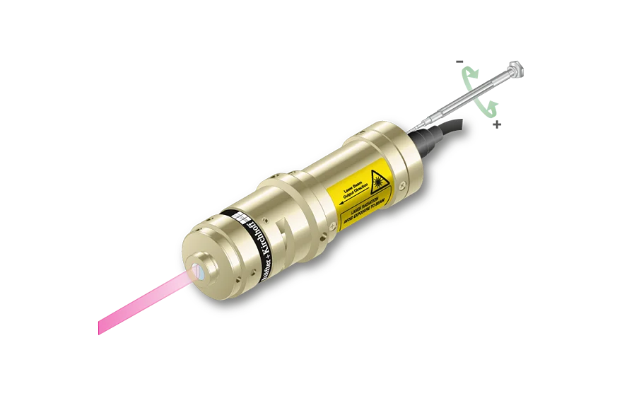 Please note, that reducing the laser power by potentiometer or analog modulation input so that it operates close to the laser threshhold negatively affects laser features like pointing stability, line width/spot size or state of polarization.