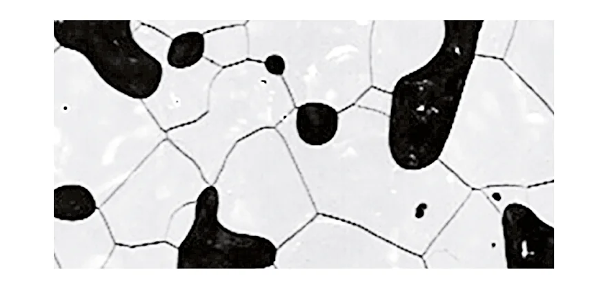 In order to capture the relevant microstructures, brightfield illumination is used. The light directed at the sample is reflected by surfaces parallel to the sensor. Light reflected from structured areas and edges is reflected away from the sensor and appears dark. For images obtained with this method, as a consequence the grain boundaries appear as dark lines and gas inclusions appear as dark bubbles or spots.