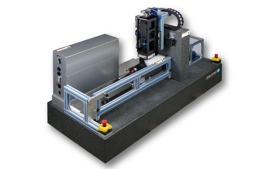 Time-consuming inspection using a microscope can be replaced by using the specially developed Large Area Scan Macroscope (LASM) with a monochrome Line Scan Camera.The Large Area Scan Macroscope consists of a Line Scan Camera, a high resolution lens as well as an illumination unit. The sample is imaged in reflection with a resolution of 5 μm (5080 dpi). The measuring width is 41 mm with a maximum scan length of 600 mm.