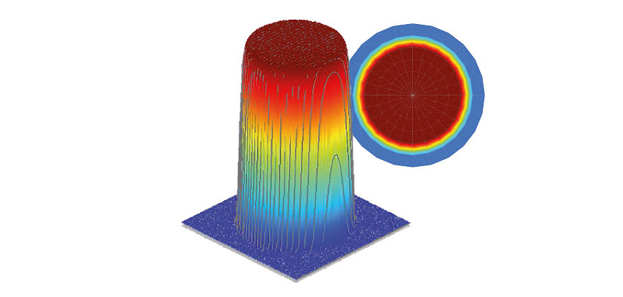 To avoid this, you can either make the multimode fiber longer (to increase mode mixing as it passes through the fiber) or coil the fiber with a smaller bend radius to increase mode mixing. You can also choose a smaller focal length to have a larger light cone when coupling into the fiber, which in turn excites more modes. Often a combination of these three strategies will result in a stable, “super-Gaussian” beam profile exiting the multimode fiber.