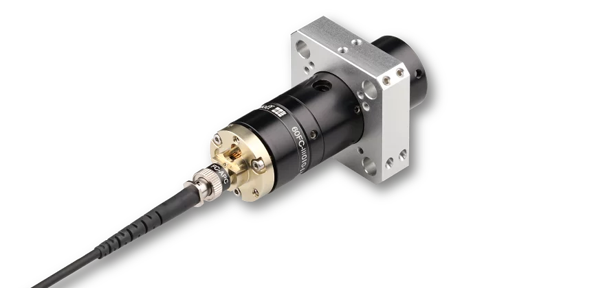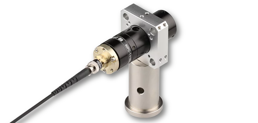 The fiber collimators Series 60FC-L with an outer diameter 25/28 mm can also be mounted using the clamp collar type CC-25-4 which is compatible with the mounting plate type 48MC-MP-25.